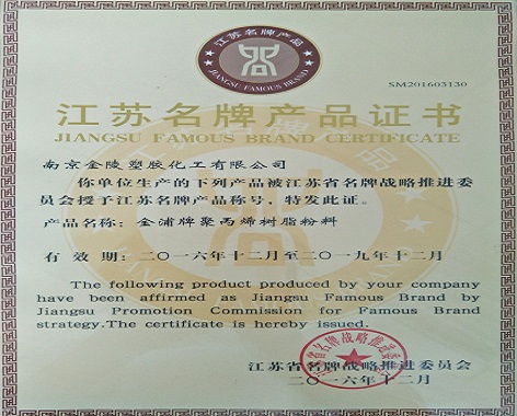 江苏名牌产品证书